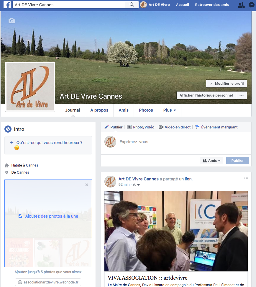 www.facebook.com/artdevivre.Cannes où en tapant dans la zone "recherche" en haut de la page de votre profil " art de vivre cannes" puis cliquez sur aimer la page !